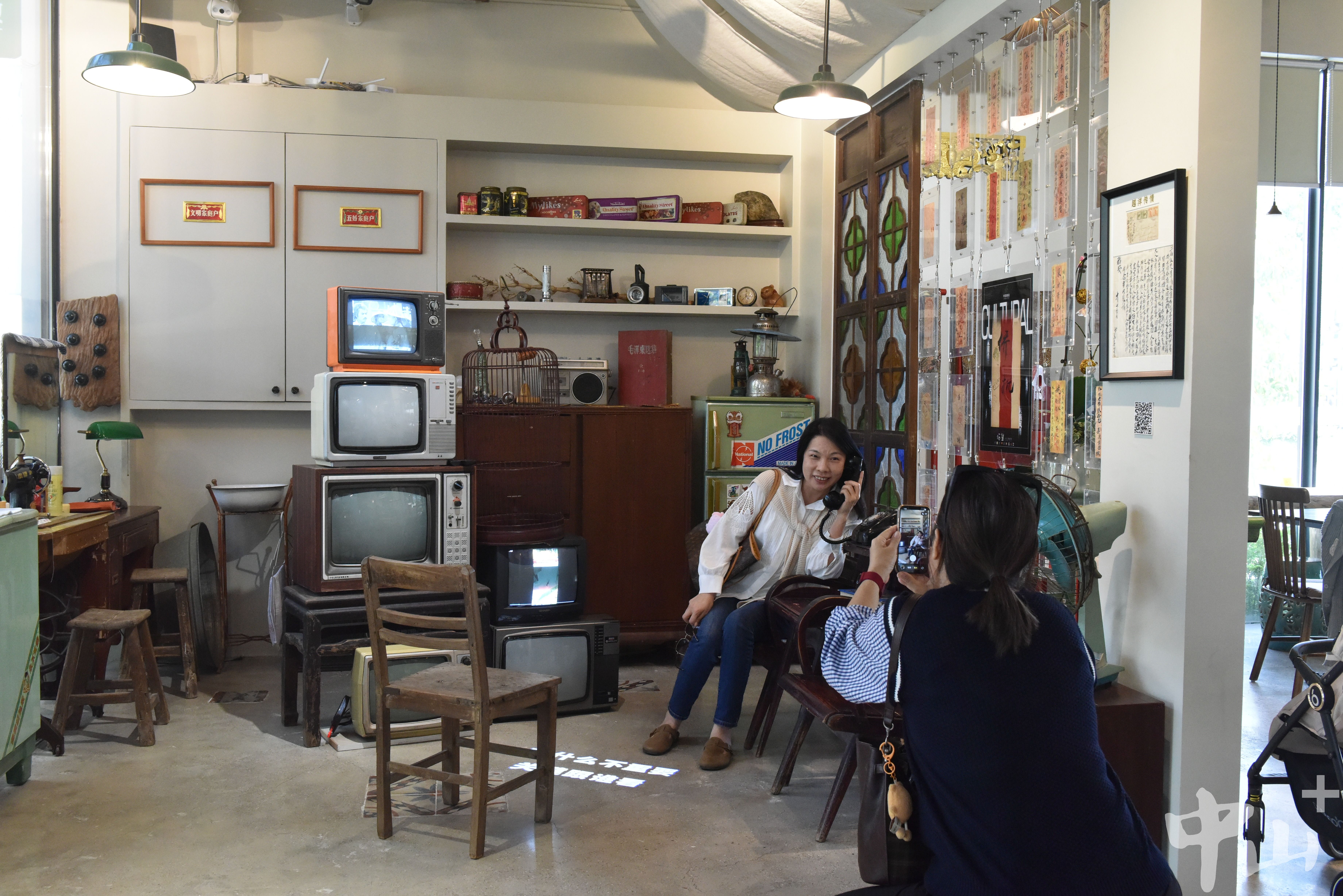 午后陽(yáng)光灑進(jìn)一樓舊物展區(qū),市民李小姐彎著腰,對(duì)著那臺(tái)老式洗衣機(jī)尋找最佳角度?!靶〖t書上說(shuō)這里有很多老物件,特意過來(lái)看看?!彼χ聪驴扉T。