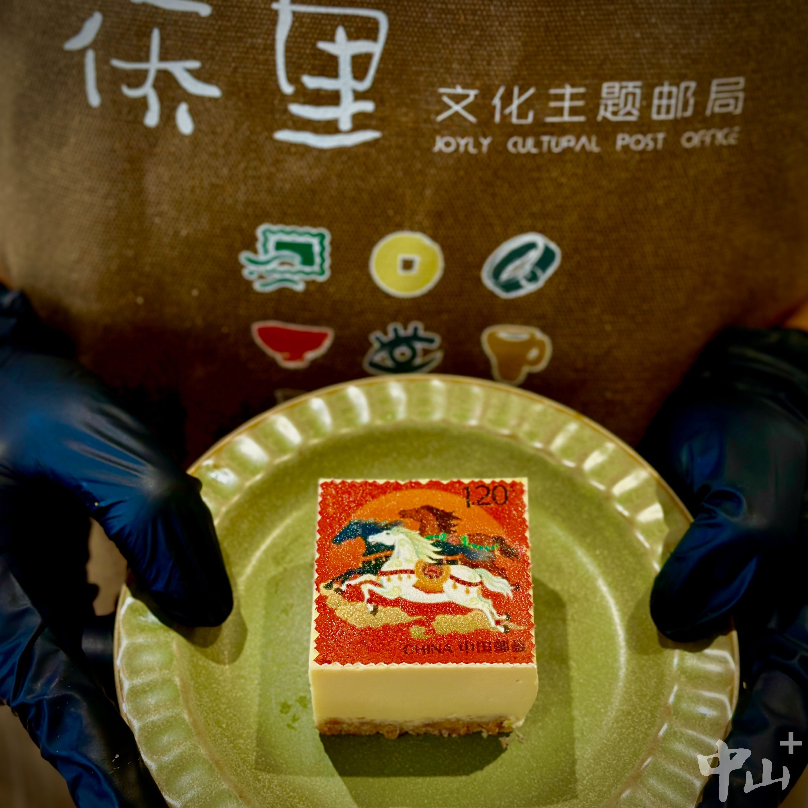 話音剛落,吧臺(tái)傳來(lái)清脆的“叮”一聲,店員轉(zhuǎn)身打開“郵筒門”,取出一份印著郵票圖案的蛋糕。投遞與收取的儀式感,讓這份餐點(diǎn)多了幾分書信年代的余溫。