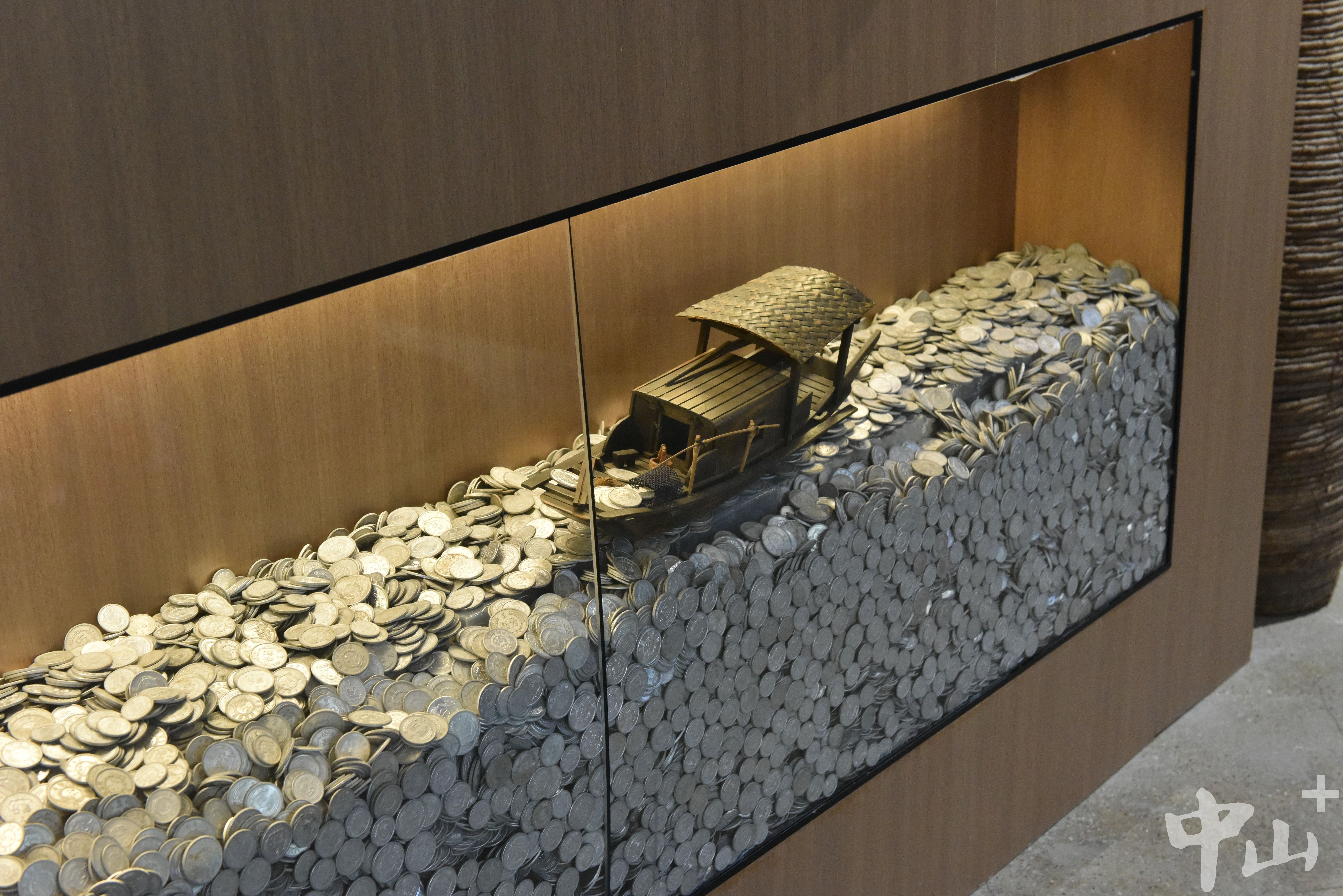 轉(zhuǎn)身望向收銀臺(tái),一座由近15萬(wàn)枚分幣堆積而成的“錢幣山”靜靜躺在展柜里,在燈光下泛著溫潤(rùn)的光澤?!昂芏嗳艘詾槿A僑都是衣錦還鄉(xiāng),”這里的負(fù)責(zé)人指著展柜里或滿或空的小船模型,“其實(shí)出海有賺得盆滿缽滿的,也有顆粒無(wú)收,甚至付出生命的。這些錢幣背后,是一個(gè)個(gè)家庭的悲歡離合?!?/p>