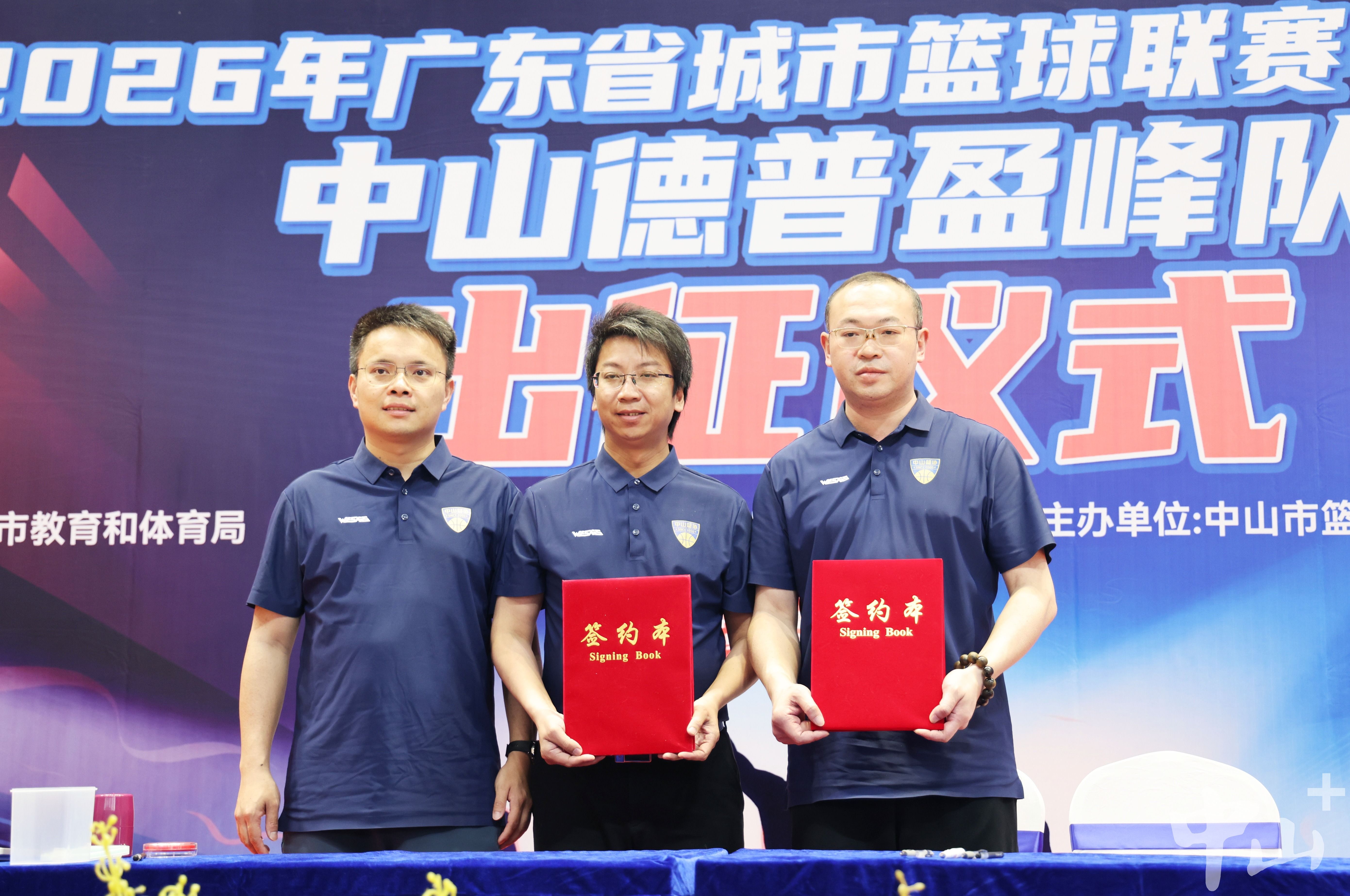 出征儀式現(xiàn)場(chǎng),首先進(jìn)行了冠名單位簽約儀式,標(biāo)志著德普盈峰企業(yè)與中山籃球文化的深度融合。隨后,中山市教育和體育局副局長(zhǎng)林永湞等向贊助方贈(zèng)送鳴謝牌匾,感謝其對(duì)中山籃球事業(yè)的鼎力支持。