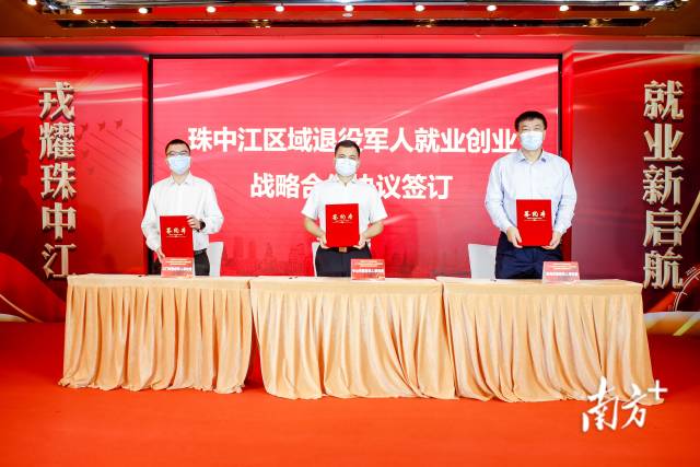 企業(yè)與退役軍人代表進行現(xiàn)場簽約。 招聘活動開展以來成效明顯,在啟動儀式現(xiàn)場,中山愛爾眼科醫(yī)院、廣東微觀科技有限公司、廣東凱世達農(nóng)業(yè)科技有限公司三家企業(yè)代表與就業(yè)對接成功的退役軍人代表進行現(xiàn)場簽約。 《珠中江區(qū)域退役軍人就業(yè)創(chuàng)業(yè)戰(zhàn)略合作協(xié)議》簽約現(xiàn)場。