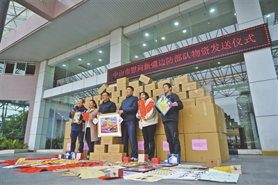 中山市雙擁辦慰問(wèn)新疆邊防部隊(duì)物資發(fā)送儀式。記者 易承樂(lè) 攝