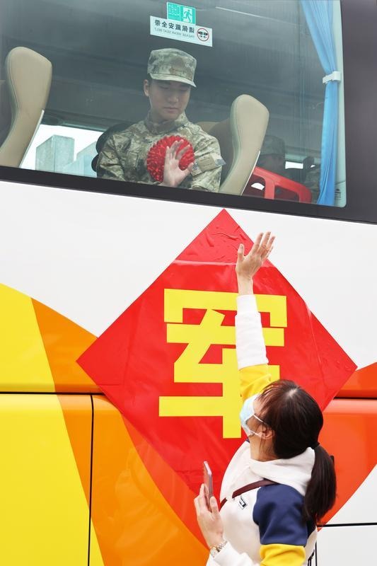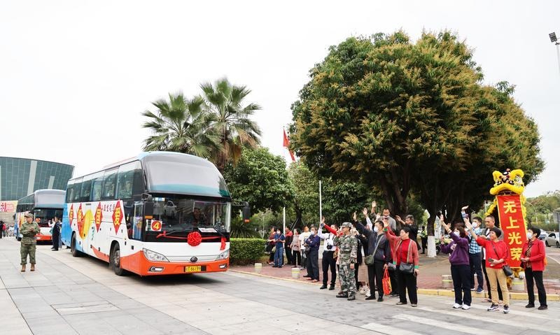 東區(qū)街道新兵潘子晨的母親鄭紅麗深情囑咐道:“兒行千里母擔(dān)憂。你們此行遠(yuǎn)離家鄉(xiāng)和親人,一定要銘記父老鄉(xiāng)親對你們的殷殷囑托,無論是在邊疆巡邏、高山上練兵,還是為祖國站崗,希望你們在部隊(duì)里傳承中山人敢為人先的闖勁,沖鋒在前,勇?lián)笕?,努力為中山人民爭光添彩!我們將為你們營造一個穩(wěn)固的‘大后方’,時刻支持你們?!?/p> 滿載著新兵的客車徐徐駛離。記者 文波 攝