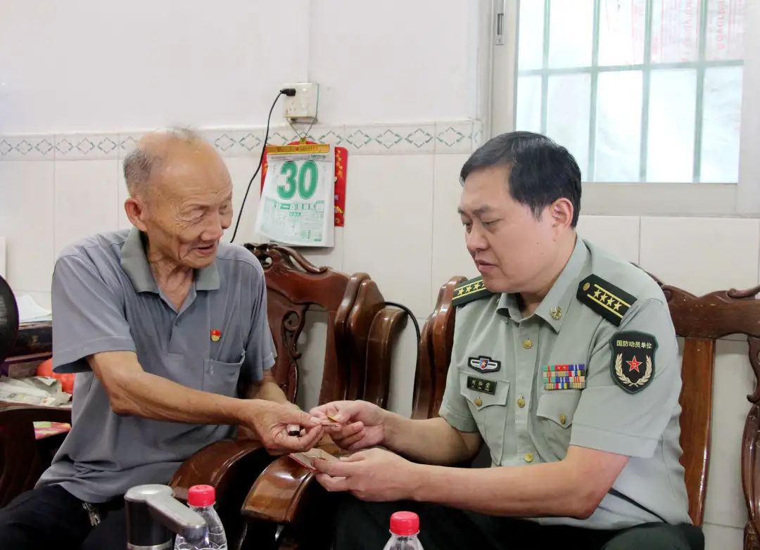 在“八一”建軍節(jié)即將到來之際,7月30日上午,市委常委、中山軍分區(qū)政委劉燦瑩來到橫欄鎮(zhèn),走訪慰問部分退役軍人,為他們送去黨和政府的親切關(guān)懷,祝福他們建軍節(jié)快樂、身體健康、家庭幸福。鎮(zhèn)領(lǐng)導(dǎo)林培華、葉劍榮、高桂冰等陪同慰問。 周七友,今年80歲,是橫欄鎮(zhèn)橫東村一名有著54年黨齡的退伍老兵。1959年,18歲的周七友參軍入伍,成為一名軍人。1968年,周七友光榮退伍。 1959年到1968年,周七友獲得了許多獎(jiǎng)項(xiàng)與勛章,這些勛章他都悉心保存,非常有意義和價(jià)值。 “這幾枚是'五好戰(zhàn)士'稱號(hào)徽章。當(dāng)年戰(zhàn)士們積極響應(yīng)黨中央號(hào)召,爭(zhēng)當(dāng)'五好戰(zhàn)士'。'五好'是指:政治思想好,三八作風(fēng)好,軍事技術(shù)好,完成任務(wù)好,鍛煉身體好”,多年過去了,周七友還清楚記得“五好”的具體內(nèi)容?!斑€有這一枚是‘技術(shù)能手’稱號(hào)徽章,當(dāng)時(shí)我能夠熟練地拆裝一整部車,所以就獲得了這枚‘技術(shù)能手’稱號(hào)徽章。這枚徽章我們一個(gè)班只有我獲得了?!?/p>