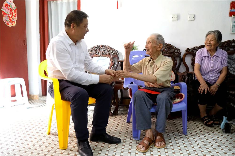 慰問組一行先后走訪了欖邊村茶東小組的烈士家屬鐘少青和茶西小組退役軍人黃勝明。高瑞生親切與他們敘家常、問冷暖,詳細(xì)詢問他們的生活近況、健康和子女就業(yè)等情況,感謝他們堅(jiān)守初心、為黨和國(guó)家事業(yè)所作出的無私奉獻(xiàn),并叮囑優(yōu)撫對(duì)象們保重身體、安度晚年。