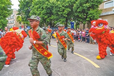 身著迷彩服,佩戴光榮花,一張張青春臉龐上滿是憧憬之情。金秋九月,中山又一批有志青年背上行囊,意氣風發(fā)奔赴軍營。 今年下半年,全市共有3000多名適齡青年報名應征,經(jīng)過體檢、政治考核、役前教育等層層選拔,共征集了300多名男兵,在讀大學生征集比例、大學畢業(yè)生征集比例再創(chuàng)歷史新高,圓滿完成了上級賦予的任務。 “希望你們不管在何處服役,是哪個兵種,都銘記父老鄉(xiāng)親的殷殷囑托,在部隊大力弘揚中山‘敢想敢闖、敢為人先’的精神,展示出‘中山兵’的良好精神風貌,沖鋒在前、勇?lián)笕?、奮斗奉獻,努力為中山增光添彩。祝新戰(zhàn)友們一路順風,刻苦訓練,能打勝仗,捷報頻傳!”在出席中山2023年下半年新兵歡送儀式時,中山市征兵工作領導小組副組長、中山軍分區(qū)大校司令員李云濤鄭重地說。 來自三鄉(xiāng)鎮(zhèn)的新兵代表馮林研究生畢業(yè)于青島農(nóng)業(yè)大學,他鄭重承諾:“到部隊后我們一定牢記使命,安心服役、刻苦訓練、嚴守紀律、積極進取,為祖國和平安寧扛好槍、站好崗,不辜負國家和家鄉(xiāng)人民的期望!” 敲鑼打鼓,列隊歡迎。一場歡送儀式,就是一次生動的國防教育。歡送儀式上,除了以東鳳鎮(zhèn)新兵張學培家庭“三代從軍”事跡為背景創(chuàng)作的原創(chuàng)詩歌朗誦《致敬夢想的接力》、男聲四重唱《強軍戰(zhàn)歌》等文藝表演,新兵還展示了軍體拳,動作干凈利落整齊,儼然已有軍人的模樣?,F(xiàn)場,省級非物質(zhì)文化遺產(chǎn)起灣金龍展演也來助陣,只見金龍起舞、鑼鼓喧天,熱鬧非凡。 兒行千里母擔憂,歡送現(xiàn)場,不少家長熱淚盈眶,拿起手機記錄著孩子入伍的珍貴畫面,送兵車緩緩啟動,家長們的目光卻始終不肯轉(zhuǎn)移。一路跟隨,久久不肯離去…… 登上大巴車,新兵們揮一揮手:“再見,中山!軍營,我來啦!” 記者 黃藝杰 張倩 通訊員 黃嘉裕 圖編 文智誠 ◆編輯:龍慧◆二審:蘇鵬蘊◆三審:周亞平 |