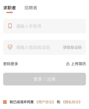 2、注冊賬號 未注冊登陸的求職者將自動跳轉(zhuǎn)到注冊頁面,完善相關(guān)信息后點擊【完成】按鈕完成注冊流程。