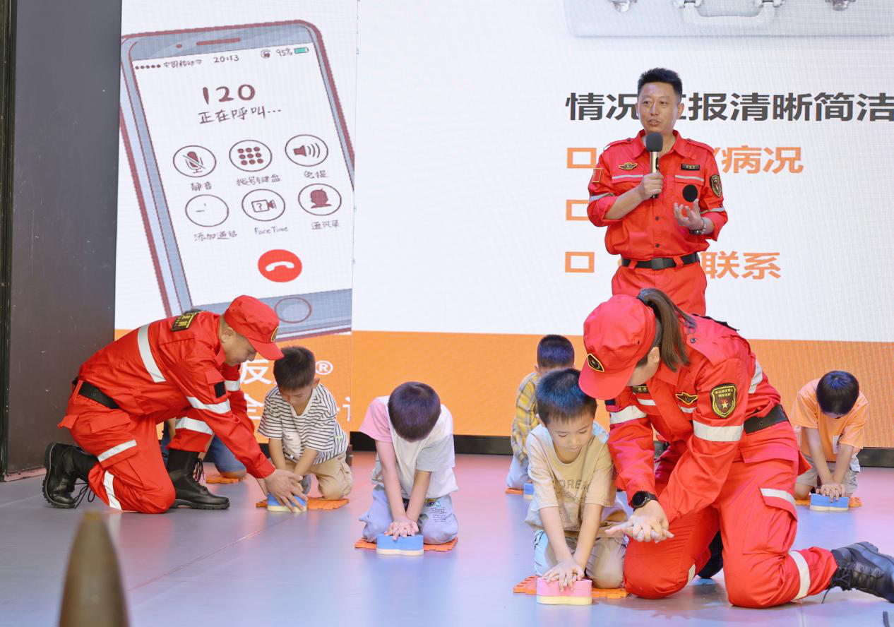 中山市擁軍支前紅旗服務(wù)隊隊長孫宏寧通過安全教育宣傳片、實際案例、情景模擬、互動問答等形式,從應急救護、如何進行心肺復蘇、120呼叫需要提何種信息等與青少年生活息息相關(guān)的內(nèi)容為小營友們講授暑期“安全第一課”,讓安全意識、安全技能深入到在場每位學生、每個家庭,希望小營友們在快樂過暑假的同時安全不“放假”。  國防教育現(xiàn)場。
