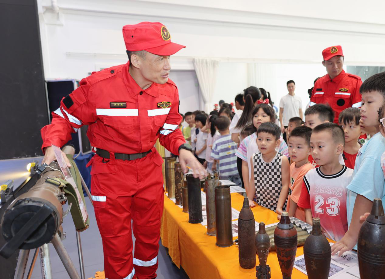 7月24日上午,中山市擁軍支前紅旗服務(wù)隊在南區(qū)街道環(huán)城社區(qū)暑期公益夏令營開營儀式上開展安全教育及國防教育,現(xiàn)場共吸引70余名社區(qū)兒童、家長以及志愿者參與。  暑期“安全第一課”。