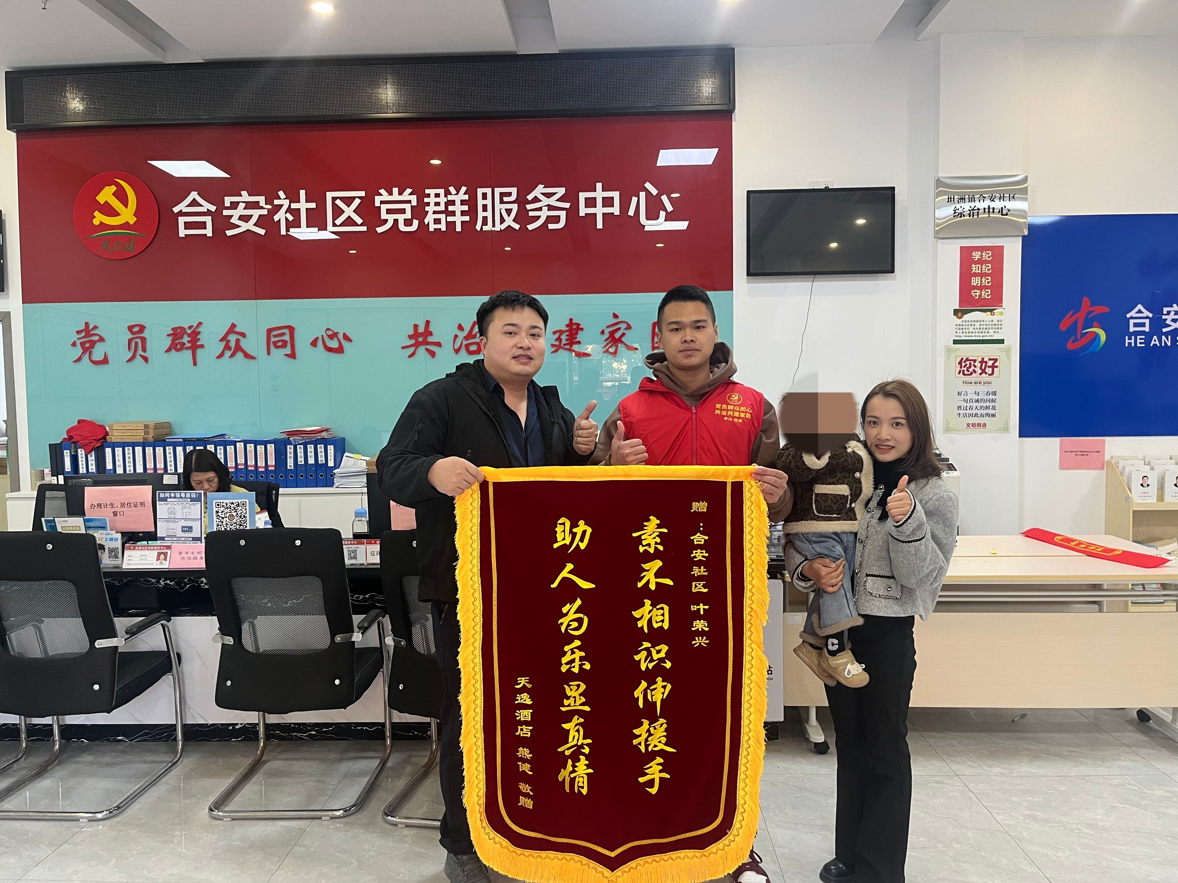 1月16日下午,坦洲鎮(zhèn)合安社區(qū)工作人員、退役軍人葉榮興像往常一樣工作,一對年輕的夫婦到該社區(qū)黨群服務(wù)中心找到他,并親手送上了一面錦旗?!敖K于找到你了,恩人啊,當面跟你說一聲謝謝!”原來,1月初,葉榮興仗義出手,令這個家庭的孩子及時得到救助,讓夫妻倆銘記在心。  葉榮興(中)仗義出手,收到由熊健夫婦送出的錦旗。受訪者供圖 據(jù)丈夫熊健回憶,1月9日晚上,孩子媽媽帶著兩歲多的孩子在外面玩,回到家里洗完澡后,孩子便開始發(fā)高燒,并伴隨著嘔吐、抽搐,情況一度十分危急?!拔耶敃r不在家里,孩子媽媽也沒啥經(jīng)驗,看到孩子這種情況就是一直哭?!?/p> 急促的哭聲和求救聲引起了葉榮興的注意,作為社區(qū)工作人員,當時他剛結(jié)束了“粵居碼”的入夜推廣工作?!拔覔挠腥顺臣埽阊曇粽伊诉^去?!比~榮興說道。見到孩子媽媽以及了解情況后,葉榮興一面安撫孩子媽媽,一面撥打報警電話求助,很快趕達醫(yī)院?!搬t(yī)生說孩子是因為高燒引起的一系列暈厥、嘔吐,不過還好送醫(yī)及時?!毙芙≌f,孩子是第一次出現(xiàn)這種情況。當晚夫妻倆的注意力都在孩子身上,等回過頭來想感謝葉榮興時,卻發(fā)現(xiàn)他早已悄然離去。 最終,熊健通過小區(qū)物業(yè)、社區(qū)間接找到葉榮興,與妻子一起當面對他表示感謝,他們的孩子也脫離了危險,身體正在逐漸恢復。記者看到,在熊健所贈的錦旗上寫著,“素不相識伸援手 助人為樂顯真情?!薄拔腋杏X沒什么的,人民群眾有需要的時候我都會出手?!苯邮懿稍L時,葉榮興說道。 記者 李鑫 通訊員 梁華 廖金旻 ◆編輯:龍慧◆二審:陳吉春◆三審:周亞平 |