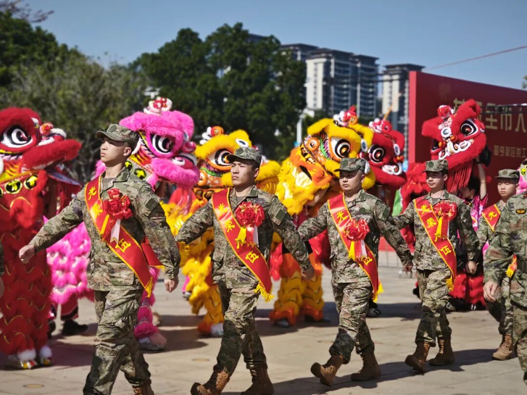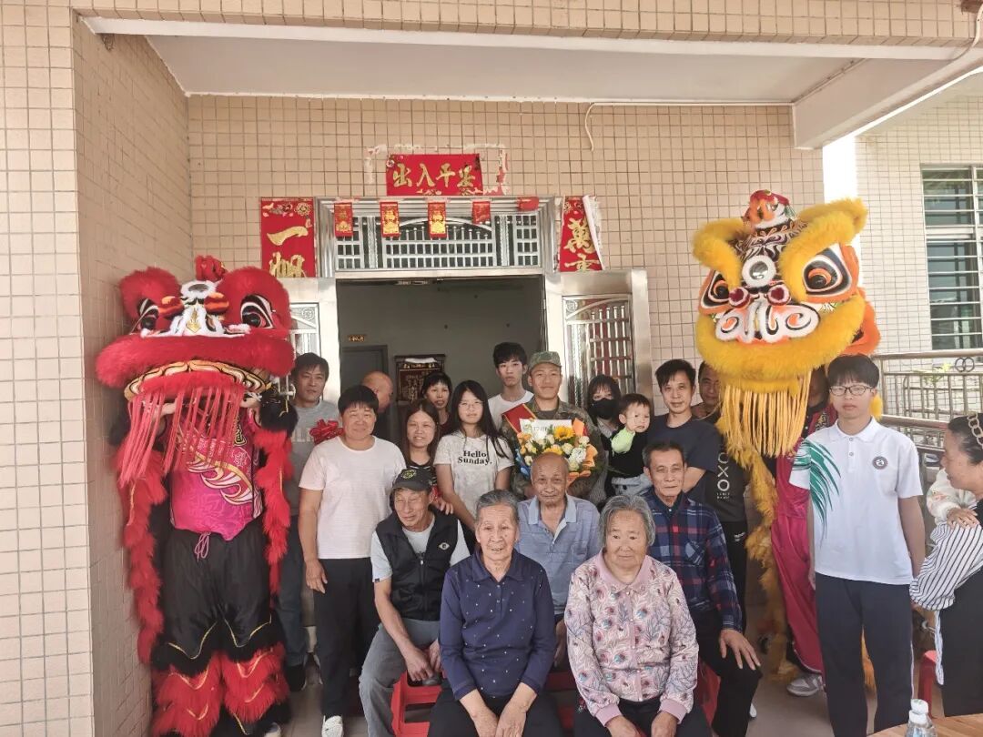村內(nèi)特意邀請舞獅團隊游村送兵,鑼鼓喧天,雄獅歡騰,父老鄉(xiāng)親們紛紛前來道賀,現(xiàn)場一片喜慶,滿是對吳啟杰的美好祝福,熱鬧的氛圍盡顯全村擁軍愛軍的濃厚情懷。
