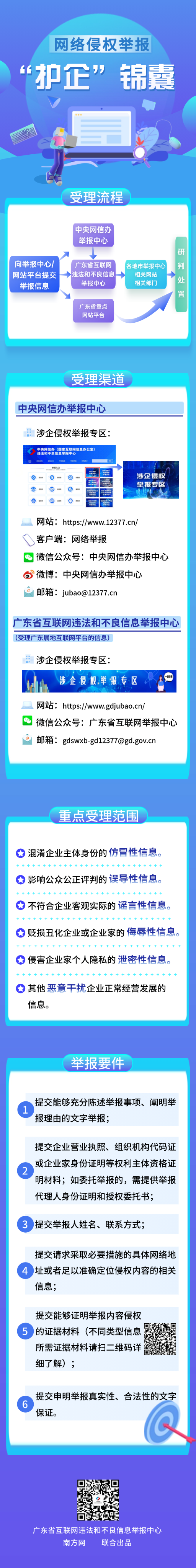 為有效助力企業(yè)維護自身網(wǎng)絡合法權(quán)益,廣東省互聯(lián)網(wǎng)違法和不良信息舉報中心精心準備了“護企”錦囊,結(jié)合案例帶大家了解涉企網(wǎng)絡侵權(quán)信息的重點受理范圍,請持續(xù)關(guān)注并收藏好~
