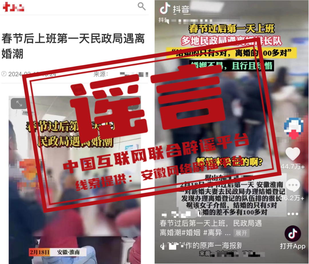 謠 言 春節(jié)后上班第一天安徽淮南有民政局遇“離婚潮”?
