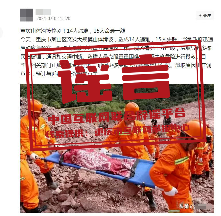 謠 言 重慶山體滑坡致14人遇難?