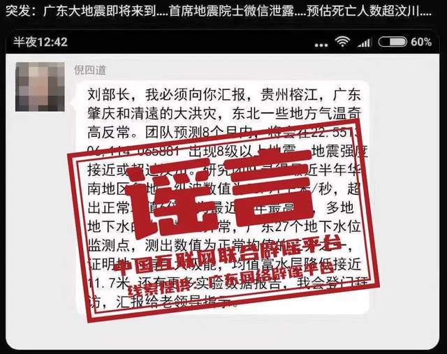 辟謠:網(wǎng)傳院士預(yù)測廣東將發(fā)生8級以上大地震?謠言!已報(bào)警