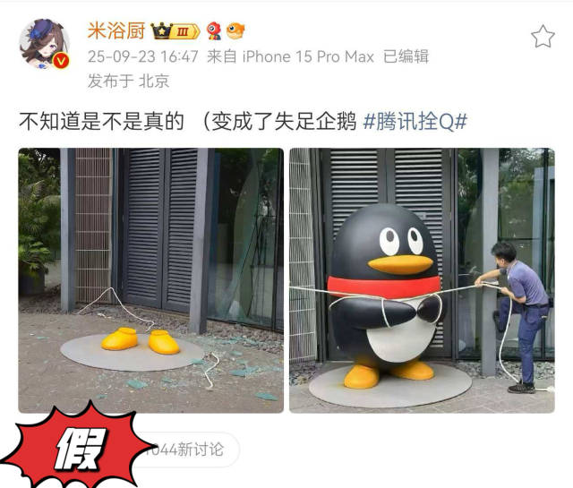 比如騰訊公司門口的企鵝雕塑,公司為了防御臺(tái)風(fēng),將企鵝用繩拴了起來。而有網(wǎng)民傳播的圖片顯示企鵝只剩雙腳,上身被風(fēng)吹走。騰訊QQ回應(yīng):“鵝拴著呢,穩(wěn)穩(wěn)的?!?/p>