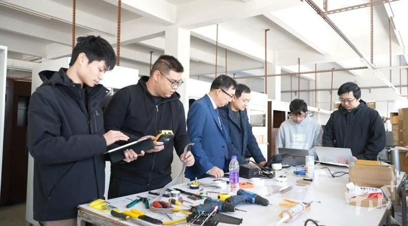 團(tuán)隊(duì)成員正在對(duì)硬件進(jìn)行測(cè)試。 見(jiàn)習(xí)記者 蓋劉寶 攝